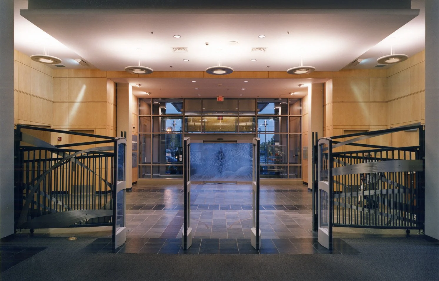 As the second largest public library in Massachusetts, the Worcester Public Library is a significant civic building located on the perimeter of Worcester Common. Across from City Hall, the building helps define a major public space within the city and has contributed to the revitalization and rebirth of the downtown area. The new stone façade is defined by the extension of a pre-existing arcade with glowing translucent stone cladding above and by an oval-shaped bay. The interiors integrate public art through the use of elements such as art glass panels and decorative metal gates.