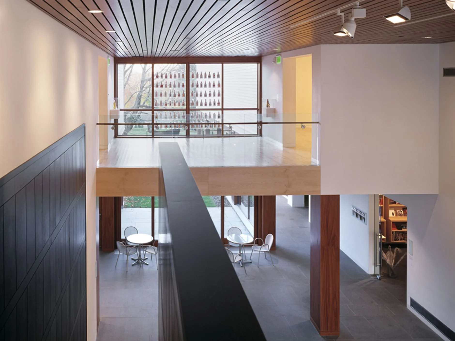 The Aldrich is nationally recognized for exhibiting emerging contemporary artists. While dedicated to cutting edge art, the new museum is located within a historic district adjacent to a restored historic house that contains administrative offices. The design embodies concepts of sequence, framed views, and transparency.